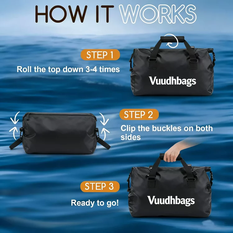 WATERTIGHT PROTECTION: Vuudh duffle bag is made of durable high-strength PVC, which is completely waterproof & snowproof. Ideal weekender bag for all your sailing, fishing, camping, sporting, boating, and motorcycling travel adventures.